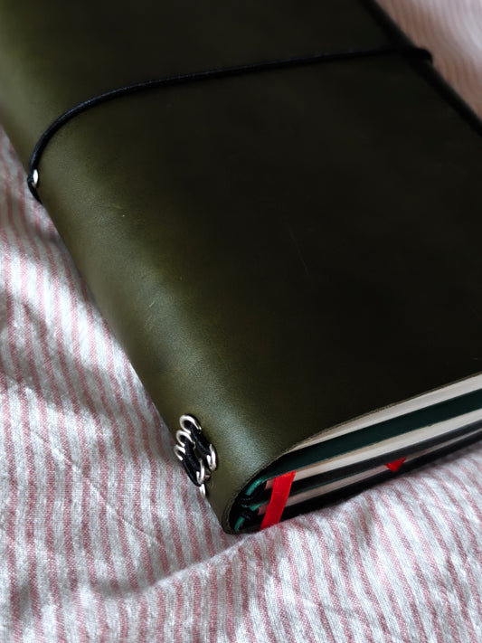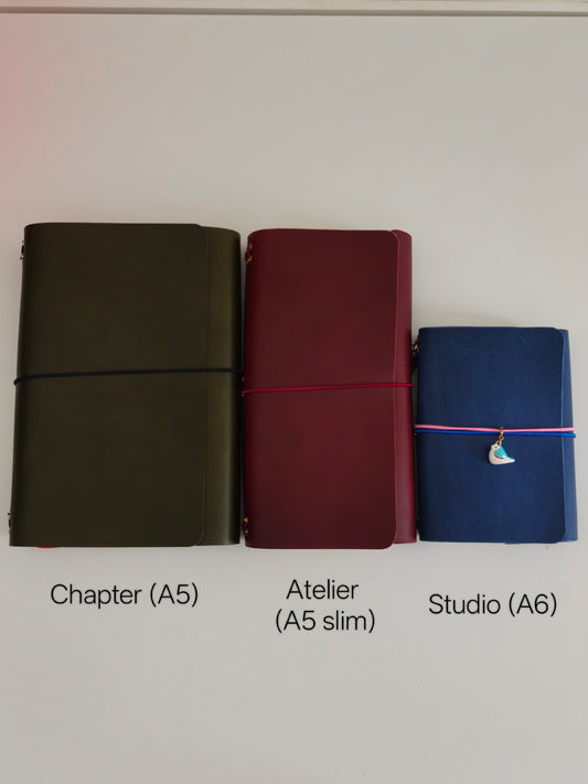 Each journal cover is carefully handcrafted using carefully sourced Italian leather, chosen for its quality, character, and longevity. Attention is given to every detail — from selecting the leather to the final finishing touches. Through my work, I share the making process itself: how each piece is shaped by hand, and the materials that give it lasting beauty.